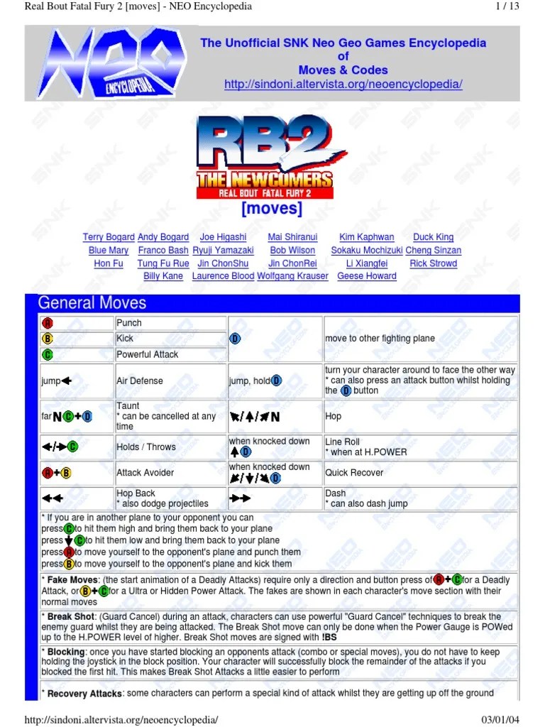 Real Bout Fatal Fury2 Moves Elements Of Fiction Video Game